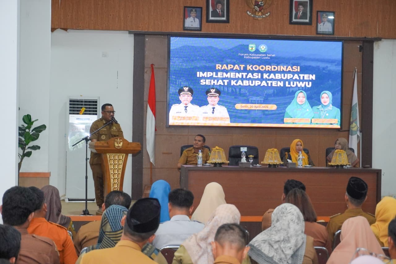 LUWU – Bupati Luwu, Patahudding, membuka Rapat Koordinasi Penguatan Forum dan Implementasi Kabupaten Sehat di Aula Rumah Jabatan Bupati Luwu, Senin (20/4/2026).