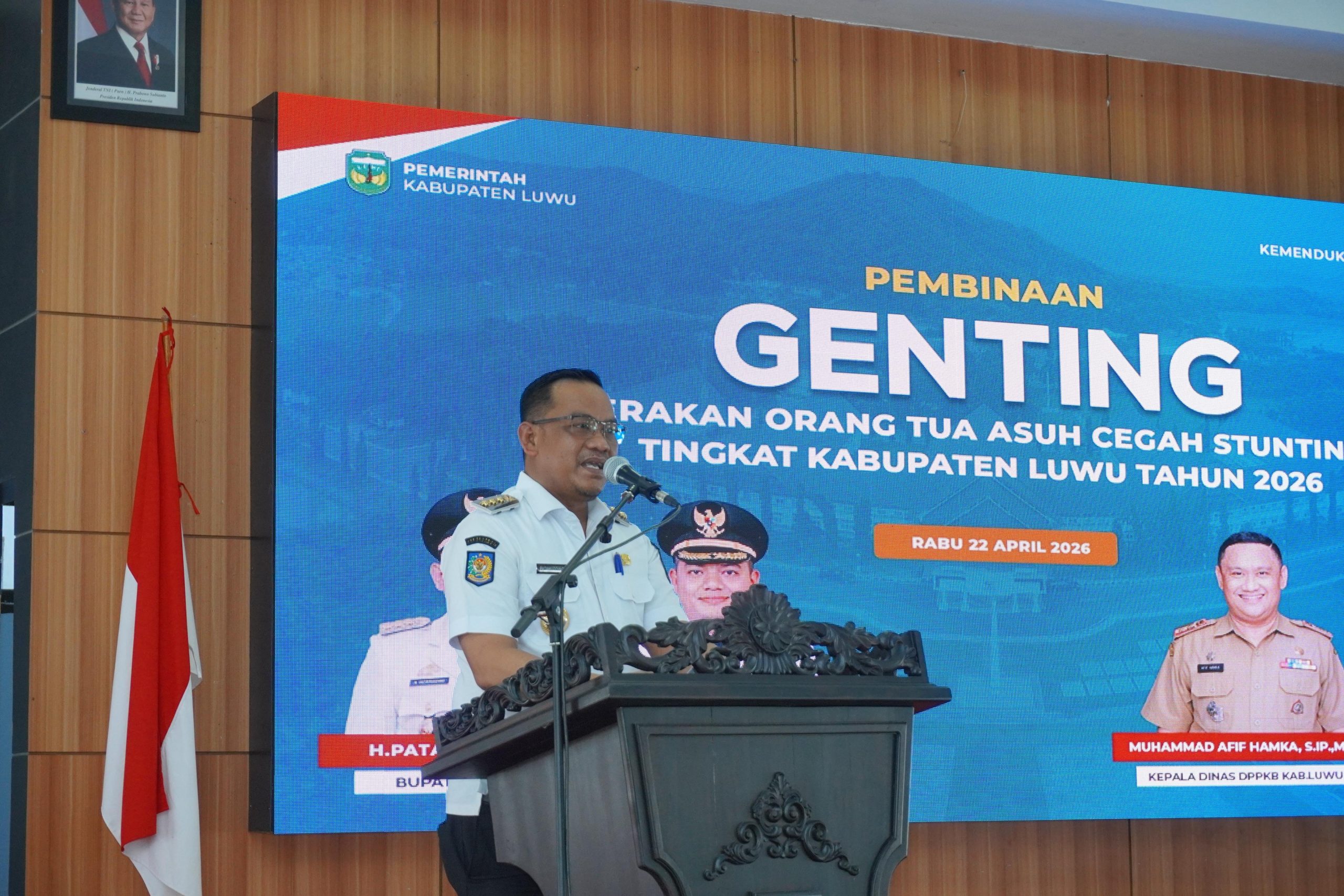 LUWU – Bupati Luwu, Patahudding, membuka kegiatan Pembinaan Gerakan Orang Tua Asuh Cegah Stunting (GENTING) di Ruang Pola Andi Kambo, Rabu (22/4/2026).