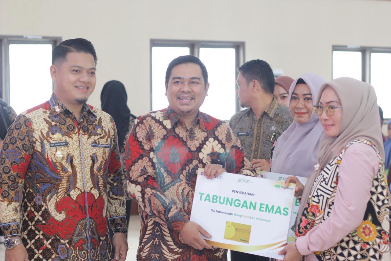 Kegiatan ini juga dirangkaikan dengan penyerahan Tabungan Emas kepada pelaku UMKM sebagai bentuk dukungan dalam memperluas akses keuangan yang inklusif dan produktif.