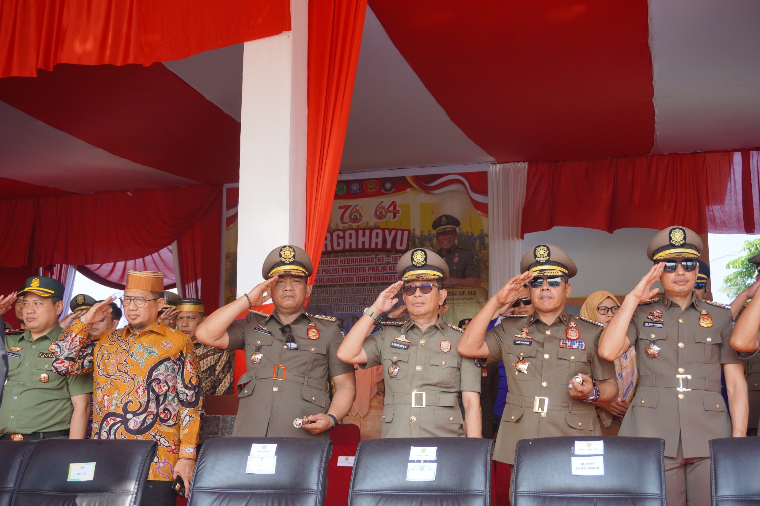 LUWU – Bupati Luwu, Patahudding, menghadiri upacara peringatan Hari Ulang Tahun Pemadam Kebakaran ke-107, Satuan Polisi Pamong Praja ke-76, dan Satuan Perlindungan Masyarakat ke-64 tingkat Provinsi Sulawesi Selatan Tahun 2026.