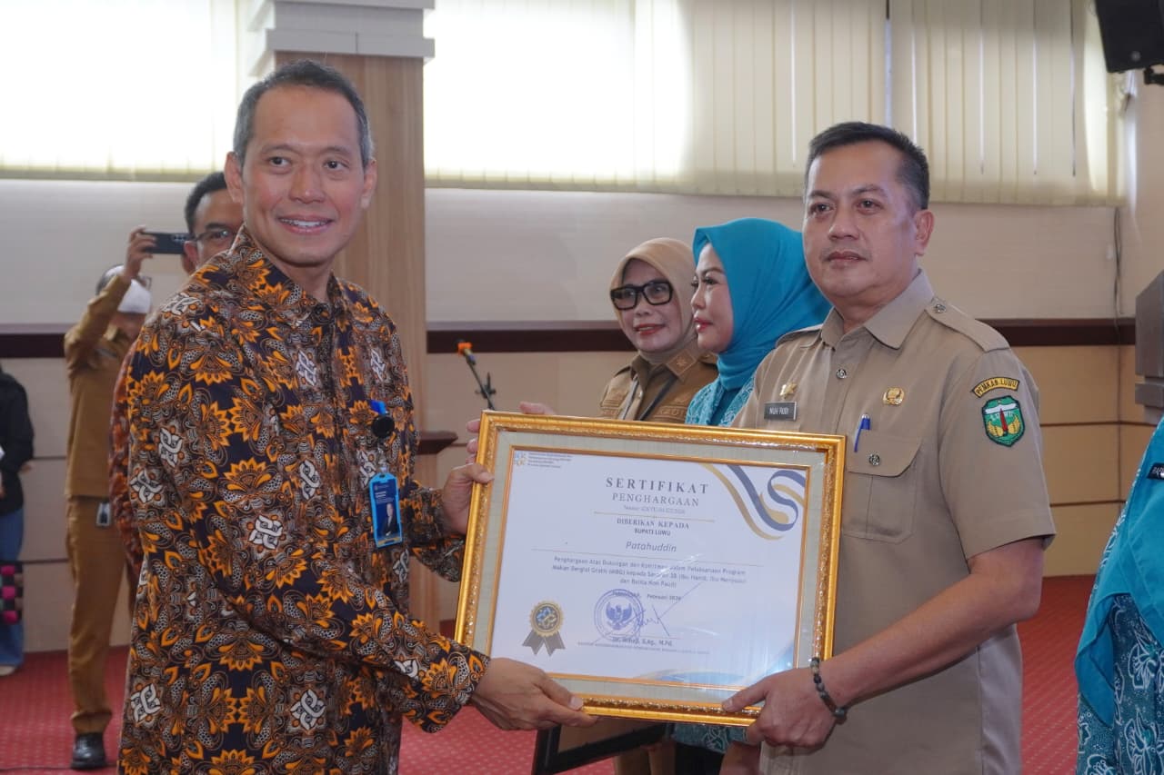 LUWU – Pemerintah Kabupaten Luwu menerima Sertifikat Penghargaan atas dukungan dan komitmennya dalam pelaksanaan Program Makan Bergizi Gratis (MBG) bagi sasaran 3B, yakni ibu hamil, ibu menyusui, dan balita non-PAUD.