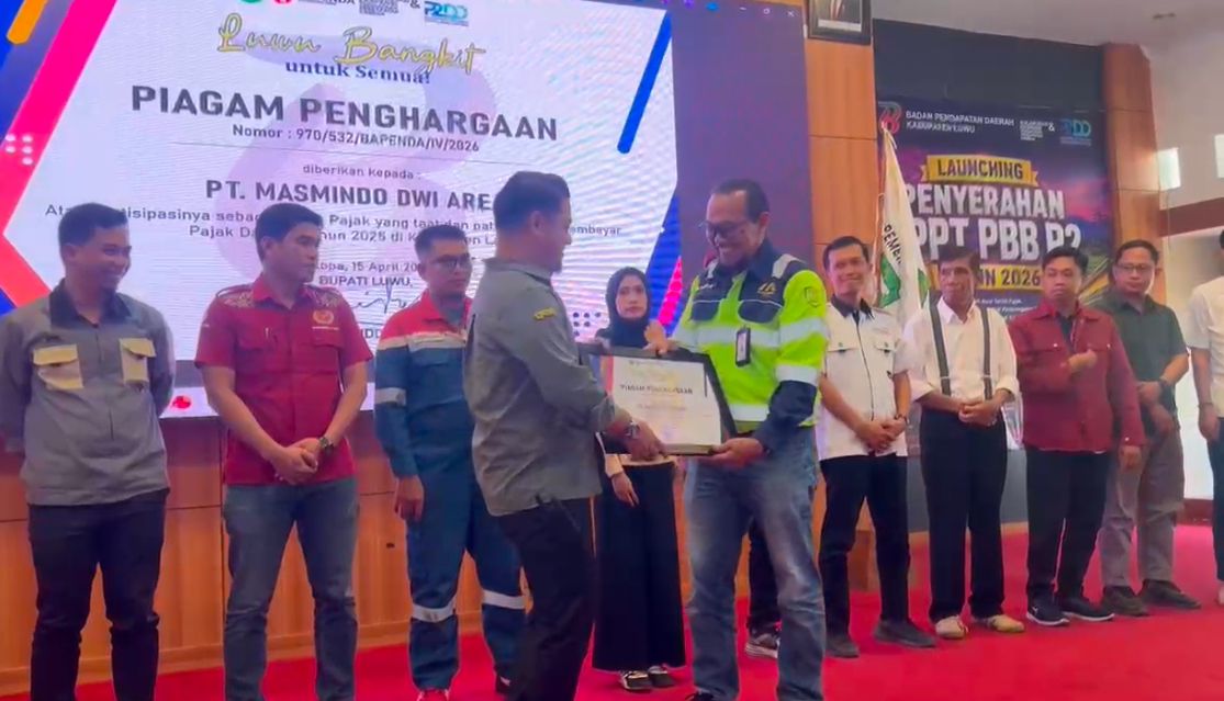 LUWU – PT Masmindo Dwi Area (MDA) kembali menerima penghargaan dari Pemerintah Kabupaten Luwu atas ketaatan dan kepatuhan dalam memenuhi kewajiban perpajakan daerah.